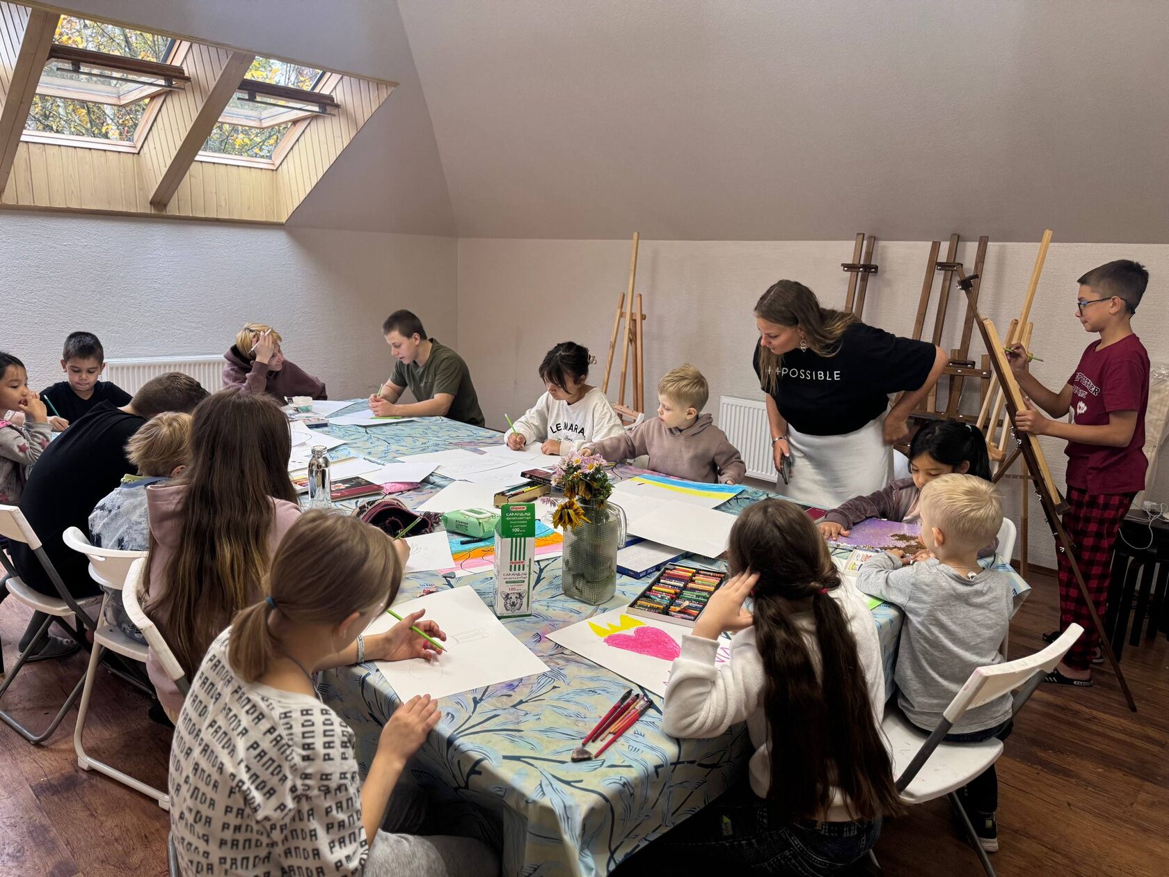 Недавно открывшееся арт-пространство пополняется новыми работами. К детям приехали наши друзья и провели творческий мастер-класс.